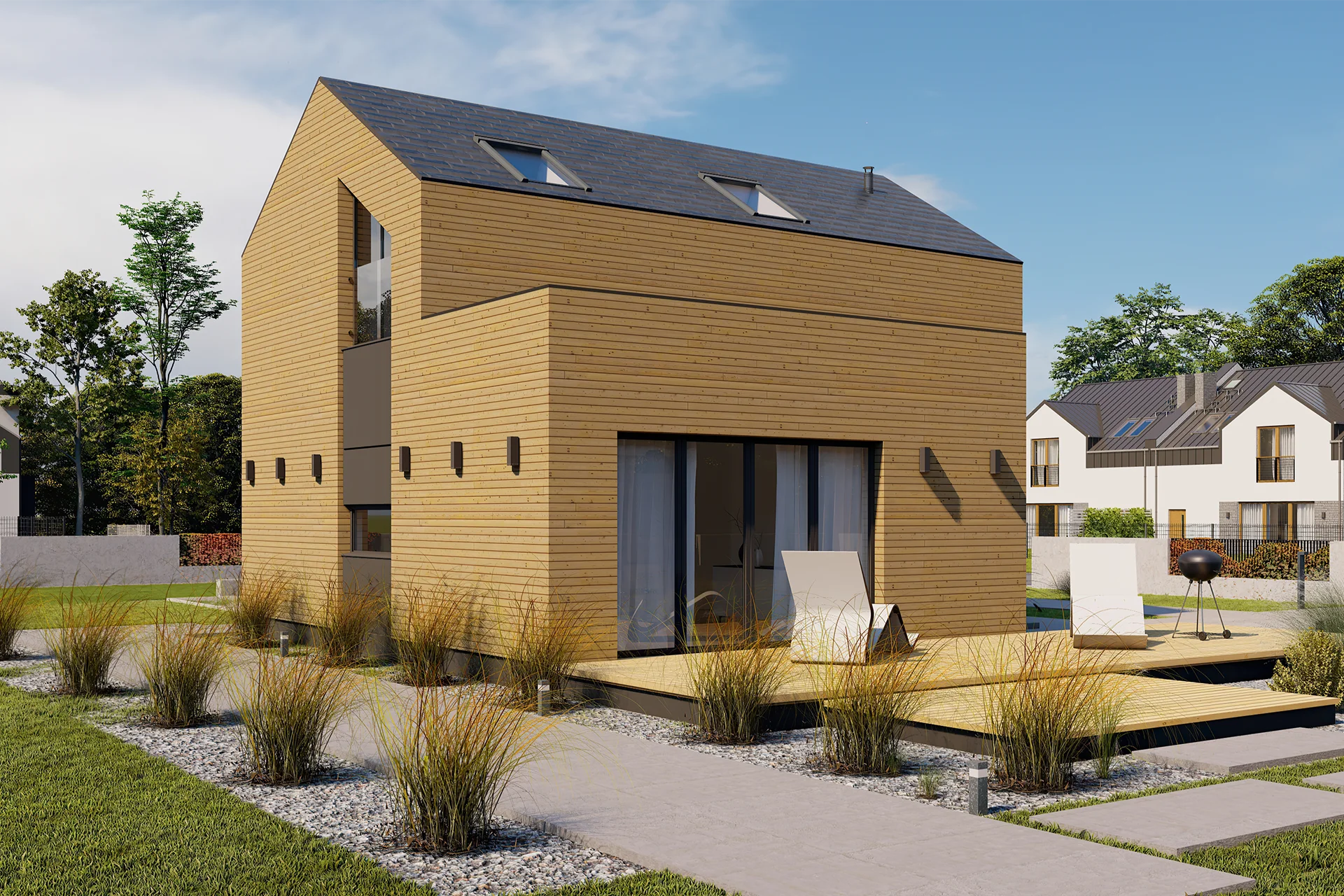 Możliwość realizacji domu zarówno z dachem spadowym jak i płaskim.