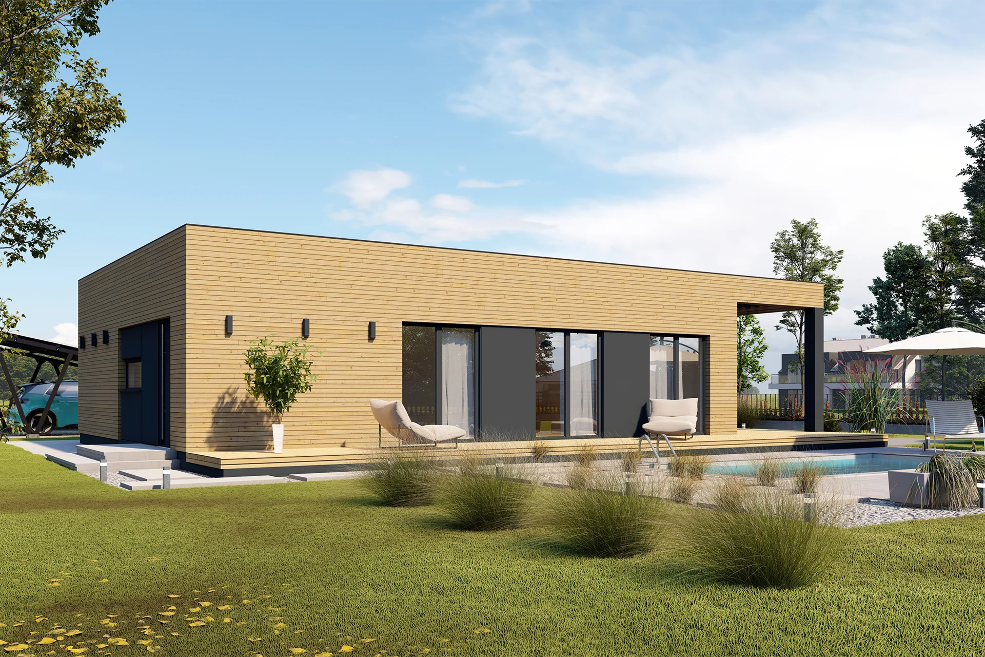 Możliwość realizacji domu zarówno z dachem spadowym jak i płaskim.